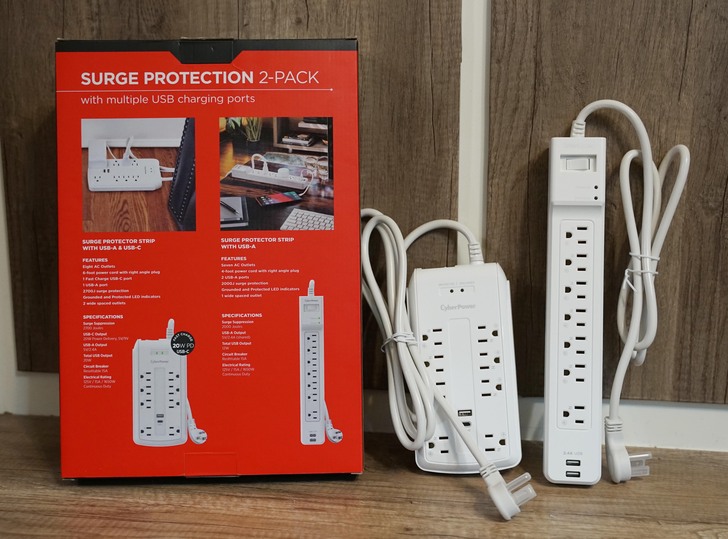 ▲因為剛好想在客廳跟臥房各都擺一組,因此CyberPower碩天防突波兩入組真的很對我味,7孔/8孔搭配雙USB與USB/TypeC各1的插孔配置,不光是一般小家電,就連行動裝置也能用,這下子要幫手機平板不用準備插頭了!