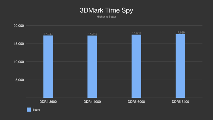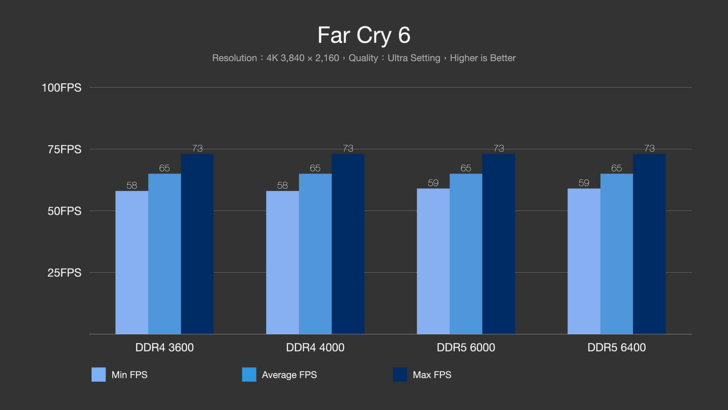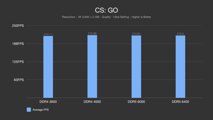 小結一下,以這四款遊戲來說,可以看到不管是 DDR4 或是 DDR5,不能說是互有來回吧,根本是幾乎一樣。如果有人說 DDR5 玩遊戲就真的不行,撇除價格來說,還是要看具體是看每個配備、散熱條件、設定差異,這些影響可能隨便都比 DDR5 和 DDR4 的差異還大了。