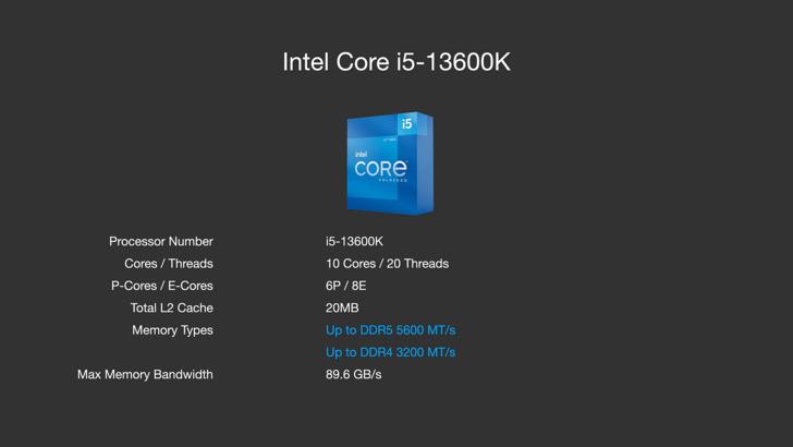 CPU 使用 Intel Core i5–13600K。Intel 官方規格標示支援記憶體時脈,在 DDR4 是 3200,DDR5 是 5600。不過這次我們使用的記憶體,都是超頻記憶體,因此會開啟 XMP Profile。如果你使用的是 AMD 的平台,DDR5 這套 XPG LANCER 也有支援 EXPO Profile,設定上不用擔心。