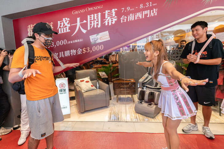 輝葉良品表示,為回饋台南鄉親,於7/9台南西門店開幕當日,現場除了限時限量破盤優惠,特別邀請剛奪冠的統一獅,外野三帥陳傑憲、蘇智傑、林安可合體擔任一日店長與民眾互動闖關體驗「按你馬殺機」,現場歡笑聲不斷。還有高人氣Uni Girls芮絲、一七一起「慶”良”鬆一夏」。