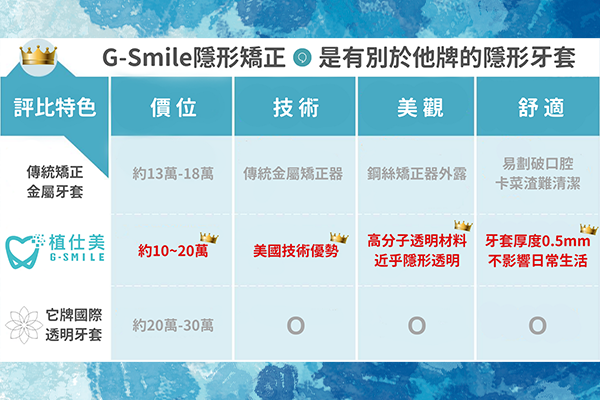 至於大家最想知道矯正費用,植仕美所提供G-smile隱形牙套比其他家台北隱形矯正費用還要實在,G-smile隱形牙套價格優勢和美國技術讓我放棄本來想做的隱適美矯正,決定選擇CP值較高G-smile隱形牙套。