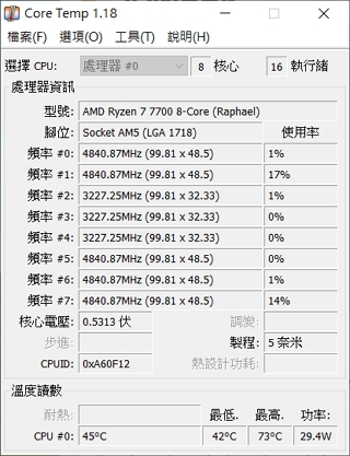 性能簡單測試 CPU RYZNE 7 7700 65W