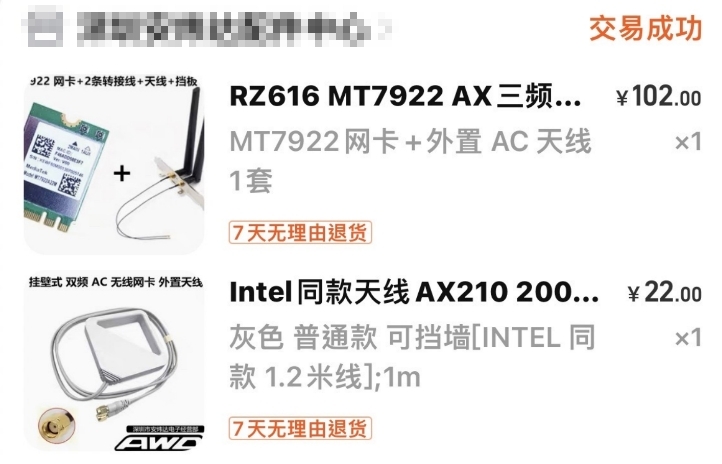 裝上去就有WIFI了也比INTEL的便宜一點,主要是AX210不支援