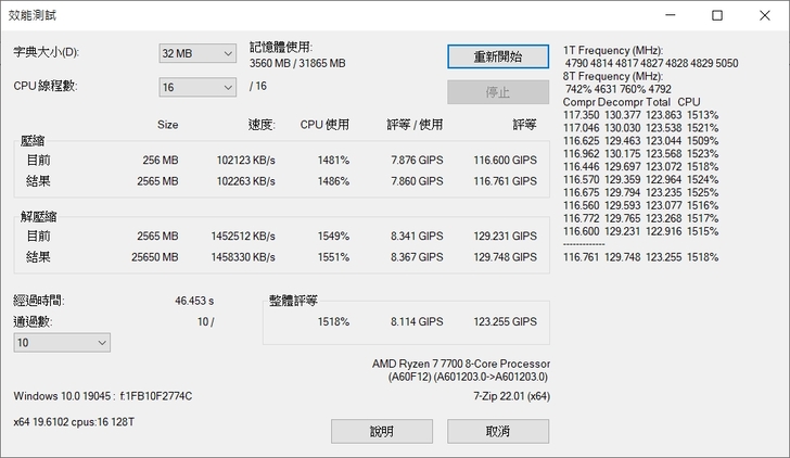 7-ZIP 壓縮性能 46.453s