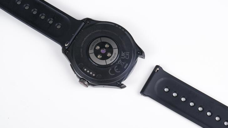 背面感測器部分,被整理到了一個透明的凸起物內,雖說那環銀色的圈圈很像 ECG 的感應器,但遺憾的,那只是裝飾,而且那塊圈圈的邊緣還很容易藏污納垢。