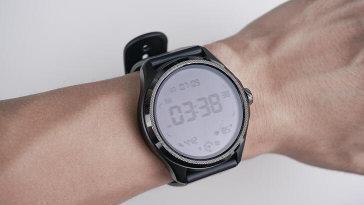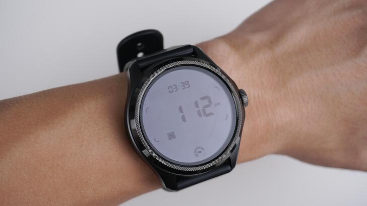 當手錶不被操作時,就會自動切換成這塊低功耗 LCD 來顯示時間。這樣的好處在於省電,而且讓 TicWatch 有了螢幕 Always on 常亮能力的同時,卻不會損失任何電池續航力,在大太陽底下也能顯示得非常清楚。