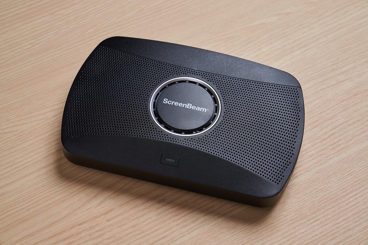 ▲來簡單開箱吧,ScreenBeam 1100 Plus無線投影器就長這樣,外型低調體積小巧,無需透過APP或適配器,就能在大顯示器上以無線方式分享和標記內容,使用時裝在大顯示器附近即可。