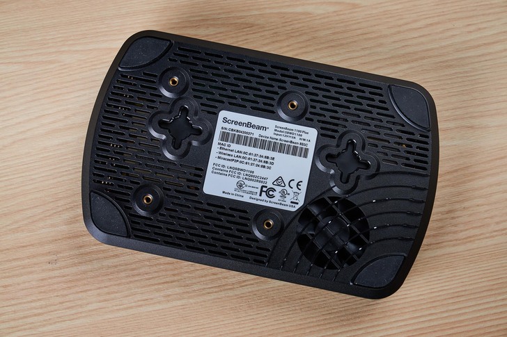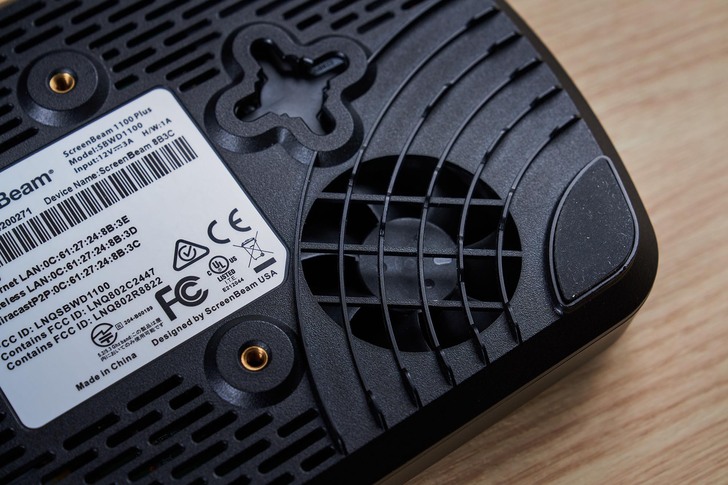 ▲通常一般投影時,當投放的時間一久、或投放高畫質內容,很可能發生熱當,不過ScreenBeam 1100 Plus底部內建散熱風扇,就算長時間投影也能確保穩定不熱當。