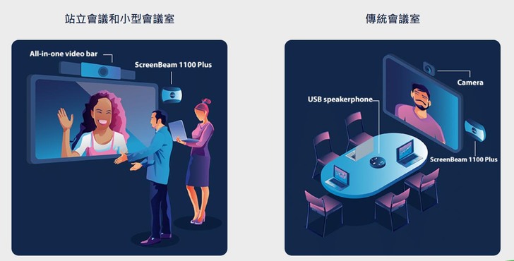 想像一下…當我們每次在會議室準備投影,每次都卡在線材搞不定,例如明明接上了,卻沒有畫面跑出來,然後大家在那裡乾等好尷尬,或是使用到一半訊號跳掉甚至是熱當,導致會議效率大打折扣…其實,只要透過ScreenBeam 1100 Plus無線投影器,以標準的無線連線協定,就能與任何使用者設備建立無線連接。