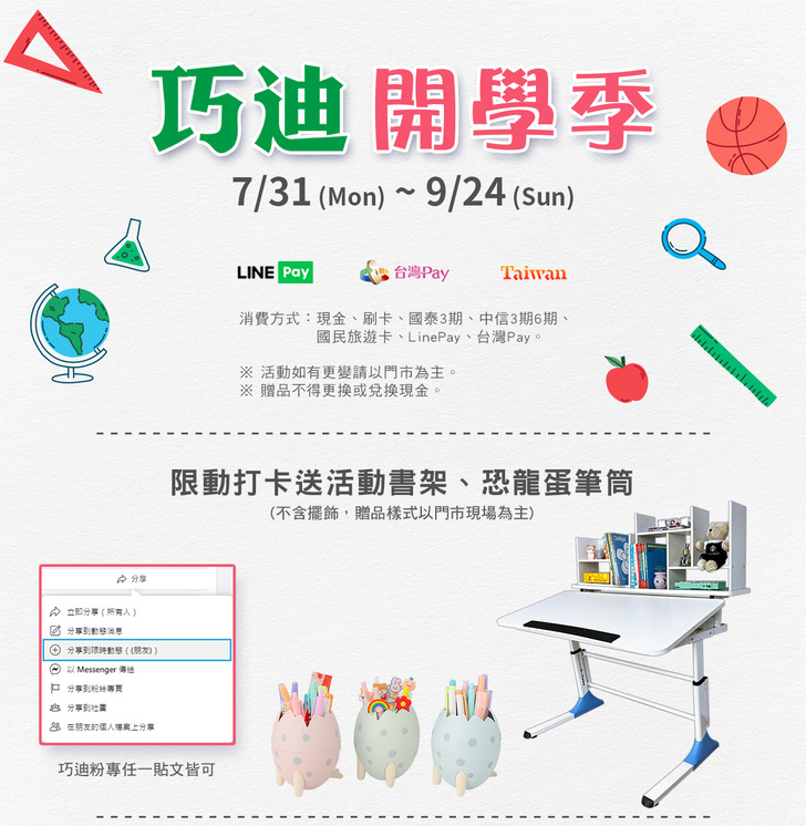 2023巧迪開學季手搖、氣壓、電動兒童成長桌椅組優惠中