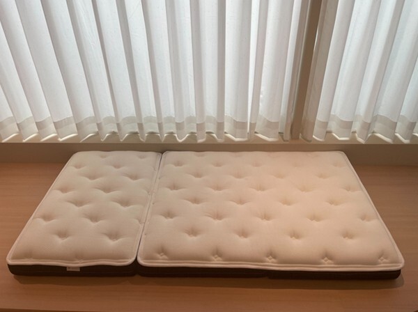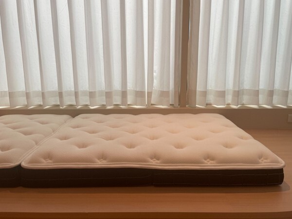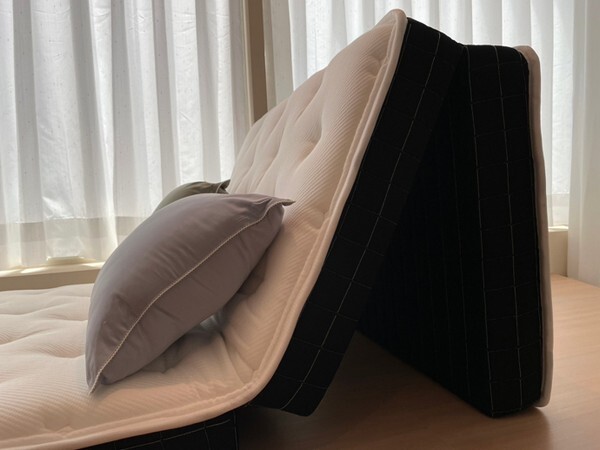 這跟我過去曾經躺過得可收式床墊完全不同,我覺得這張厚墊就是一張方便好收的獨立筒床墊,試躺了好一陣子,絲毫不覺得悶熱,反而整個身體都輕鬆舒服。