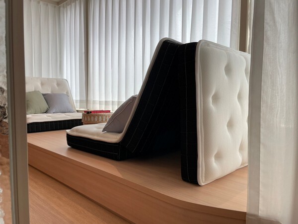 走上二樓就是體驗的地方,店員在了解我的需求之後就引領我到無光厚墊的區域,遠看還以為是給我們坐的休息區,原來這個小沙發就是無光厚墊。