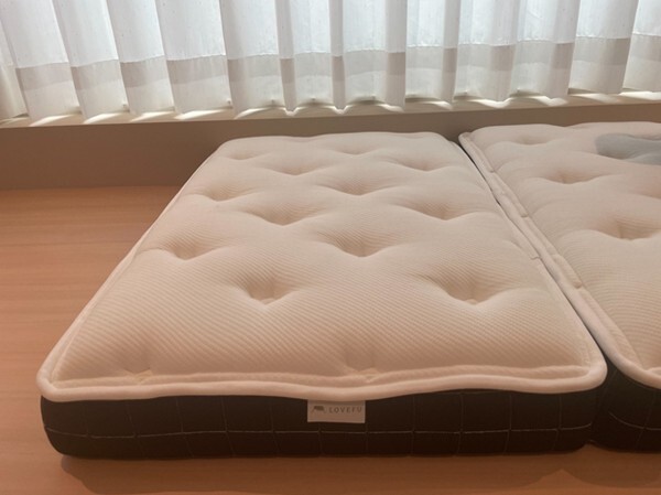 桌椅那些我覺得都小事,唯一讓我感到困擾的就是床!因為我這個人還蠻重視睡眠品質的,但為了這段時間又特別買一張床墊也很不合宜,所以我就朝可收式的床墊為出發,公司前輩有建議我可以參考LoveFu的無光厚墊,搜尋了一下原來他們最近在板橋也有開立門市了,想著去看看也不錯就前往了!