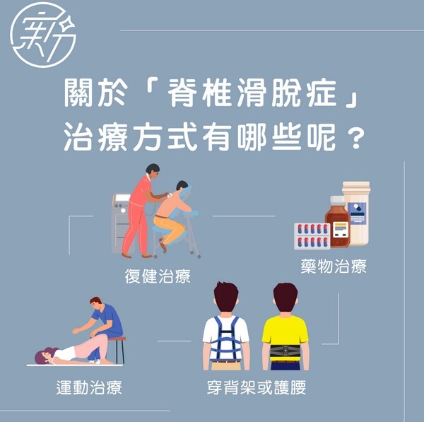 上述的治療方式,可依醫師評估後與患者討論的實際狀況做適合的治療建議。還沒有被診斷出有滑脫的朋友,平常也可以透過運動來強化並加強核心與背部伸展;已經有下背痛的朋友,一定要趕快去找復健科醫師及物理治療師尋求專業意見,儘早治療才可以盡快康復哦!