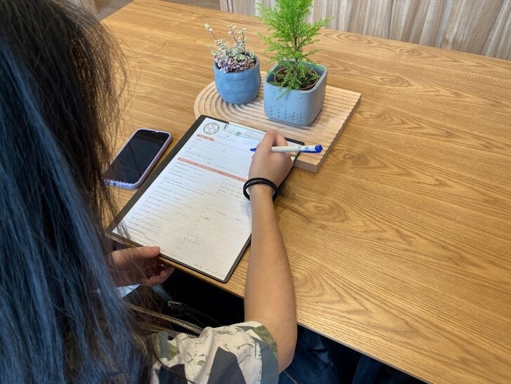 第一次體驗的客人要先填寫資料,他們會針對你的問題幫你做加強。