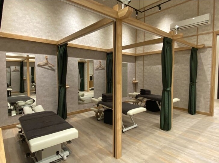 填完資料他們就會帶你到床位,每個床位上都有放替換的衣服,空間都是半開放式,而且我看簾子拉上後密封程度很好,安全感很夠,一躺上去之後,發現床超級好躺,跟一般店的床差別很大,師父說這是特地從國外進口來的,不像一般的床,他除了好躺而且是機械式,假如是推拿喬骨的時候,腰部的地方會根據情況上升,讓整復的作用更好。