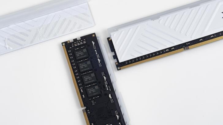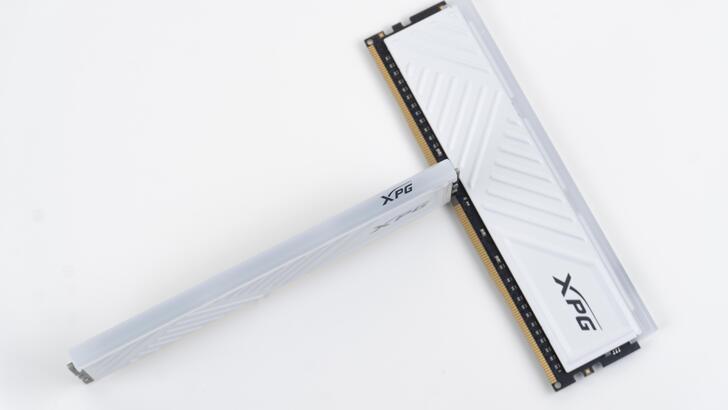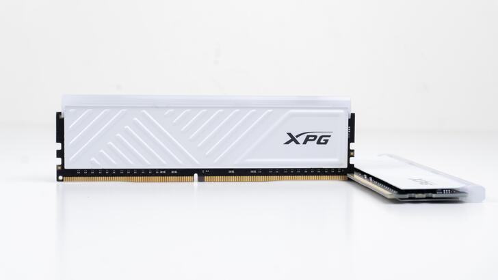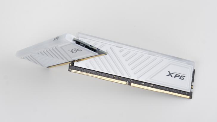 D35G 有黑白兩種顏色,那我當然是選白的。也有分為帶有 RGB 燈效的 SPECTRIX D35G 與無 RGB 燈效的 GAMMIX D35。雖說 RGB 燈條不像 D50 有著那樣醒目的三角形發光區域,但從記憶體散熱片表面的線條設計仍可見三角形狀的設計元素。