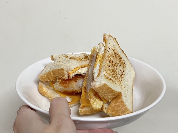 我幫它取了個名字是地瓜起司花枝排烤土司!