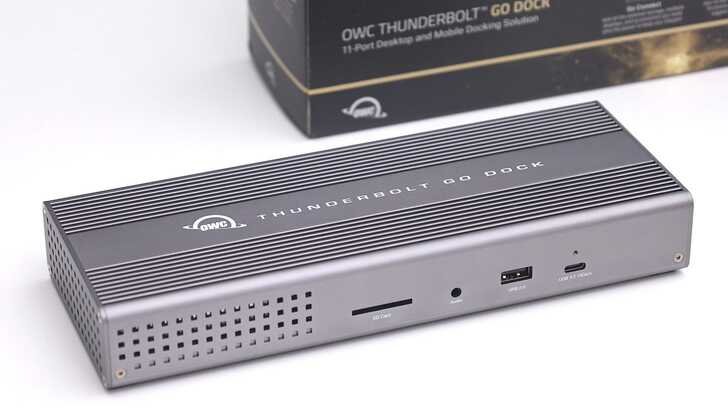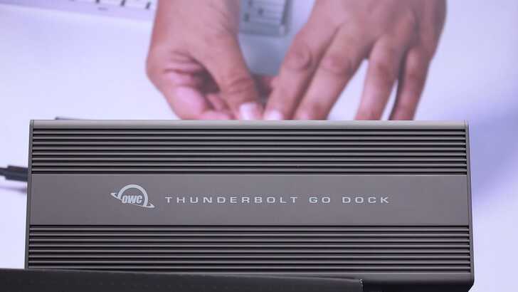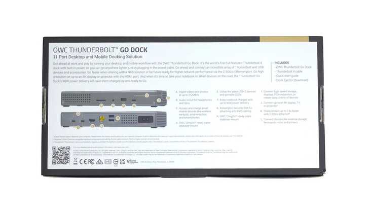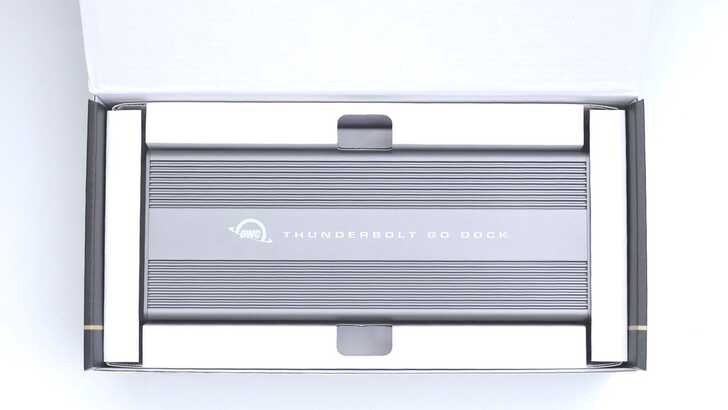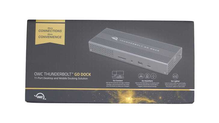 盒裝一如繼往的經典背景和排版,產品名稱為 OWC Thunderbolt Go Dock,副標題 11-Prot Desktop and Mobile Docking Solution。
