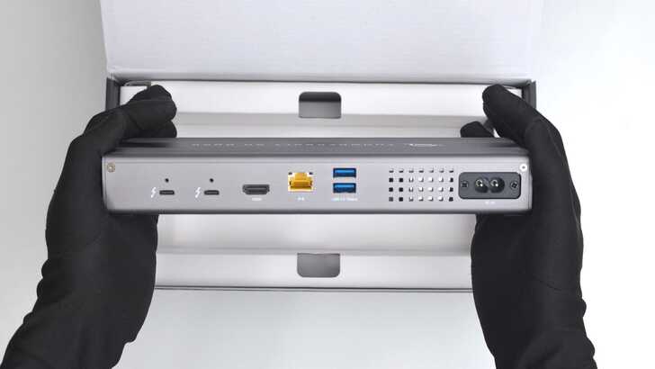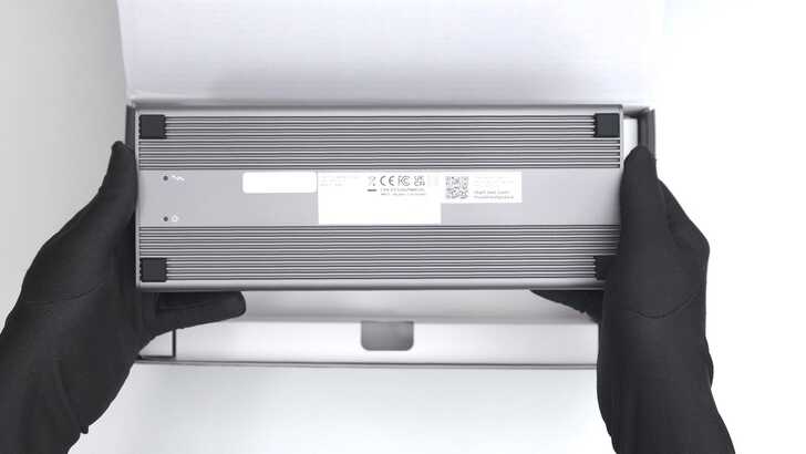 打開包裝後,可以看到產品本體,整面鋁金屬銀色的樣貌。我覺得在顏色的選擇上還不錯,現在大多 Dock 的選色都比較深一點,而 OWC 這台的顏色滿亮的。