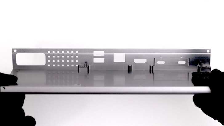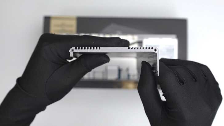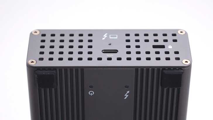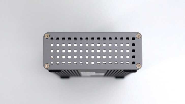 側邊可以看到具有鋁擠型加工的特性,並非以金屬板加工後沖壓,因此在外殼的重量更重,但手感也非常扎實、堅固。頂部有一些溝槽,除了增加外觀視覺性,通常也能加強一些散熱能力。