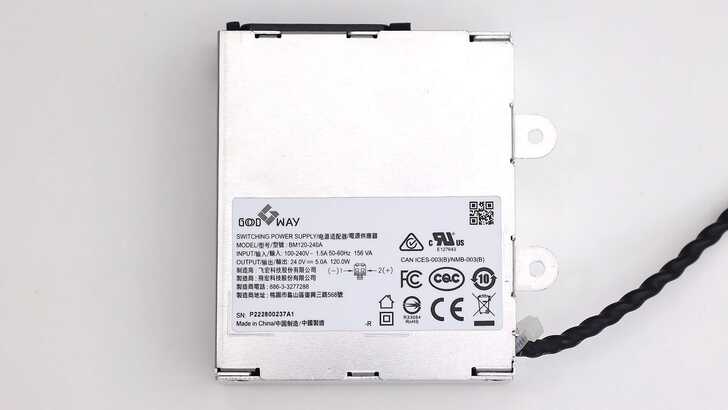 在電源的金屬外殼上可以看到 Good Way Logo,在 COMPUTEX 2023 上 Good Way 的攤位也有看到類似 Go Dock 的產品。該電源上標示 24V ⎓ 5A,120W,由 Phihong(飛宏科技)製造。