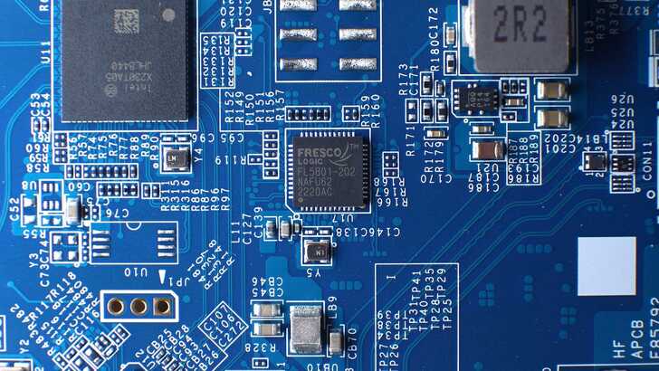 一顆 Fresco Logic(現已由 Parade Technologies 併購)的 FL5801 是 USB2.0 Hub Controller。