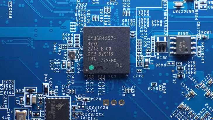 一顆 Infineon Technologies CYUSB4357-BZXC,為 USB3.1 Gen2 10Gbps Hub Controller。