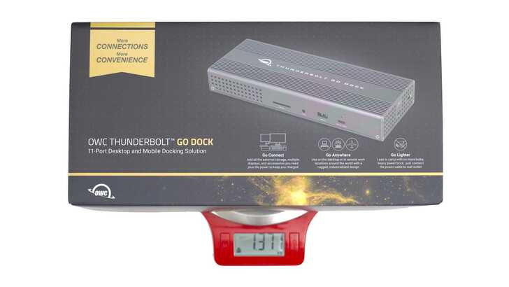 OWC Thunderbolt Go Dock 機身重量約 935.5g。