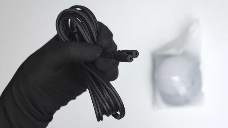 其使用的電源線為 C7 Power Cord,並且為扁線,收納後比較不容易纏繞打結。