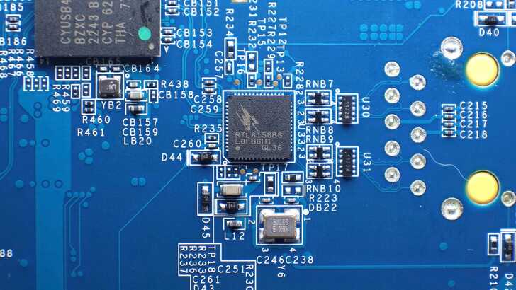 翻到板子背面,有一顆 Realtek RTL8156BG 為網路晶片,將 USB3 轉為 2.5GbE,亦同時支援 10/100/1000M 的網路速度。