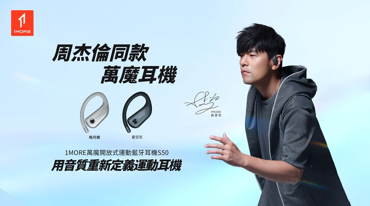 1MORE萬魔運動藍牙耳機 S50由華語流行天王周杰倫代言,並與粉絲分享1MORE S50耳機的優異性能:「創新開放式設計,音質超棒,運動不掉,周圍聲音通透入耳」,持續為1MORE萬魔應援。