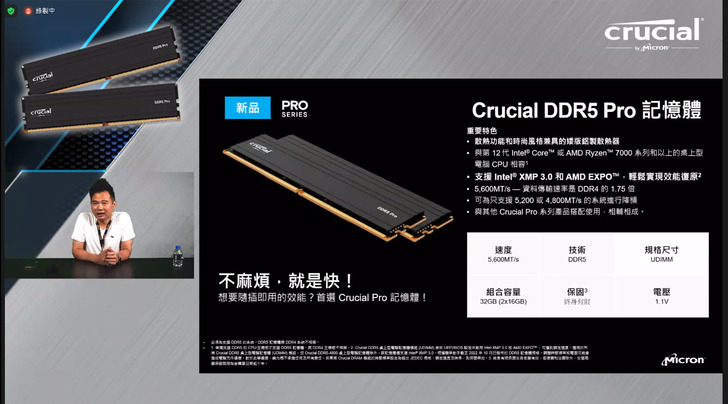 繼先前Micron Crucial 推出了 DDR5-5600裸條 kit包裝的產品之後