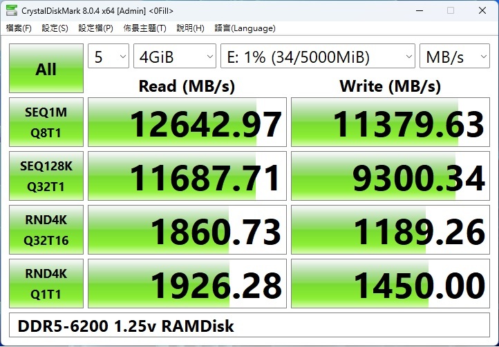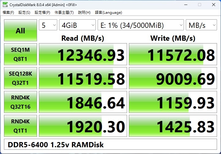 RAMDISK讀寫來到14034 MB / 12287 MB