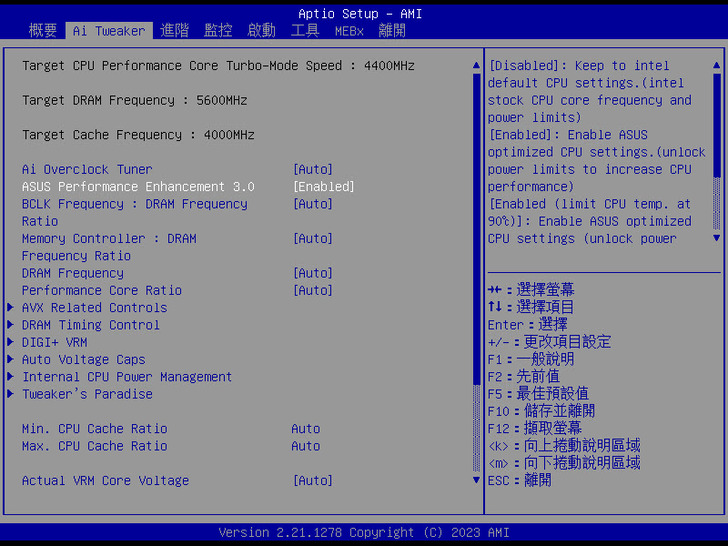 首先是未開啟華碩APE 3.0加強模式,總體來說系統會以較為穩定的設定值為主