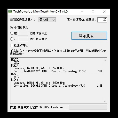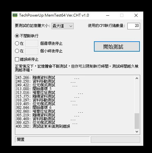 MemTest64 記憶體同樣給它測試了幾分鐘,測試過程也沒有偵測到任何錯誤。