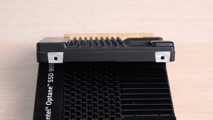 除了安裝 15mm,同樣也向下相容 9mm、7mm 或其他我沒看過的厚度的 U.2 SSD。如圖中右邊安裝的是 Intel Optane 905P SSD,左邊安裝的是 SAMSUNG PM9A3。