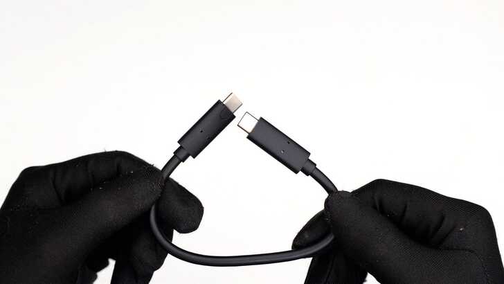 隨附的 USB-C 線非常短,方便攜帶。長度約,但線頭是比較長的。
