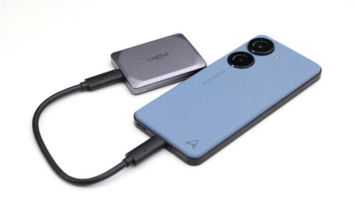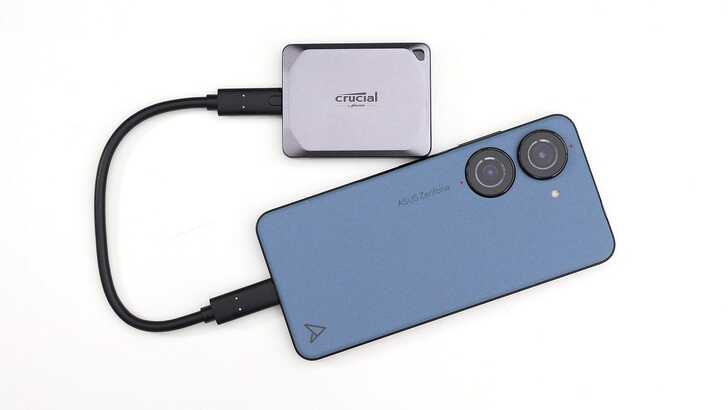 實測將 X9 Pro 連接到 ASUS Zenfone 10,是可以正常辨認、讀寫的。Zenfone 10 是目前手機市場上主打單手可以掌握的小手機,將 X9 Pro 放在一旁,更可以顯出 X9 Pro 真的是非常小巧的外接 SSD。