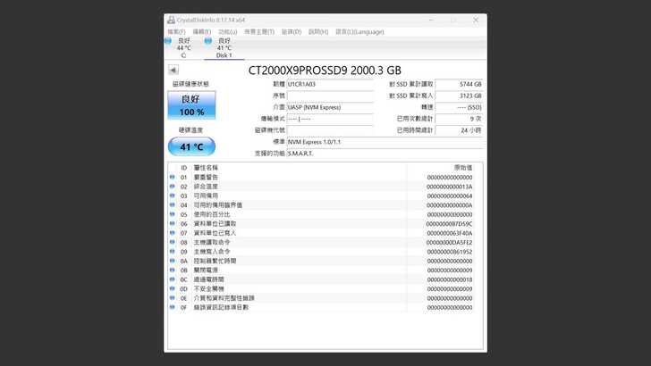 首先在 CrystalDiskInfo 中可以看到型號為 CT2000X9PROSSD9。X9 Pro 韌體為 U1CR1A03,對比 X10 Pro 韌體則為 U1CR1B03。由於找不到拆開的方法,因此無法拆開分析使用的方案。但經原廠確認,X9 Pro 和 X10 Pro 皆使用 SMI SM2320 的單晶片方案,為 USB3.2 Gen2 x2 20Gbps 規格。基於這樣的資訊,我猜測可能是有利於開發和管理,可能是透過韌體或其他方式使 X9 Pro 以 USB3.2 Gen2 10Gbps 的速度運行。