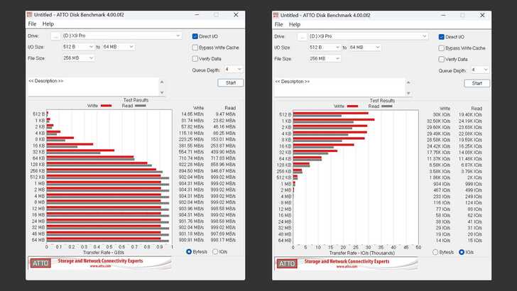 在 ATTO Disk Benchmark 中,在 512KB 以上寫入速度都在 900MB/s 以上,讀取更是逼近 1,000MB/s。