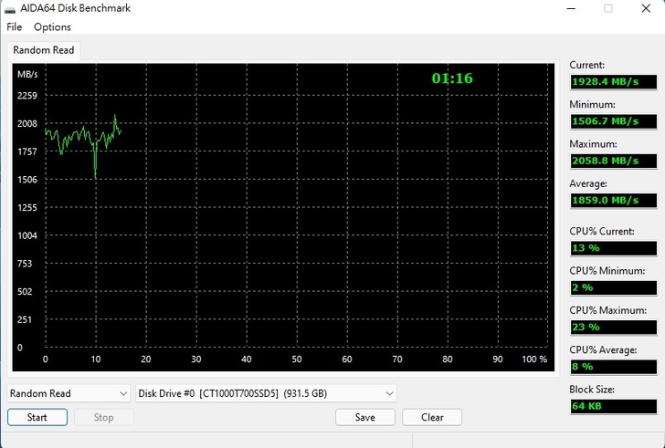Crucial T700 Pro 1T 使用美光原廠高等級顆粒NAND Flash,在實際讀寫表現接近於官方所稱的循序讀取11,700 MB/s ,循序寫入9,500 MB/s在效能表現很棒。