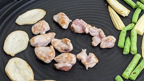 雞肉真的鮮甜又好吃,我們也沒什麼特別醃肉,只有雞腿肉片想說要來吃吃看不同味道稍微醃一下,不過完全不影響他雞肉本身的鮮甜!!