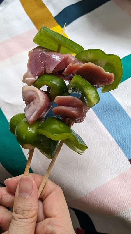而且野飼崎雞他們家最好的是雞肉都幫你切好剁好,像雞腿肉丁撕開密封包裝,就是很剛好的大小,自己DIY串在一起,變成青椒雞肉串,簡直是中秋夯肉的神仙組合~
