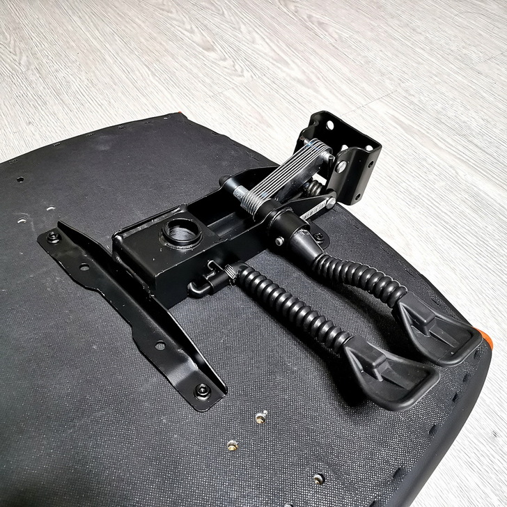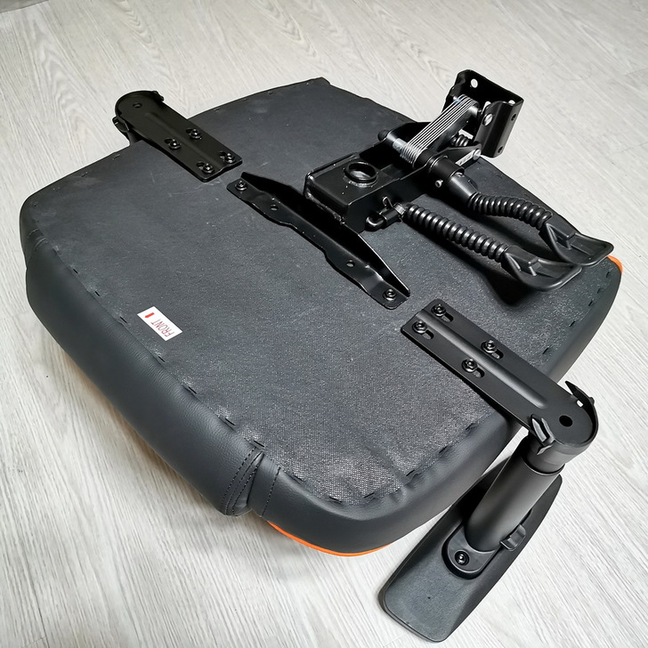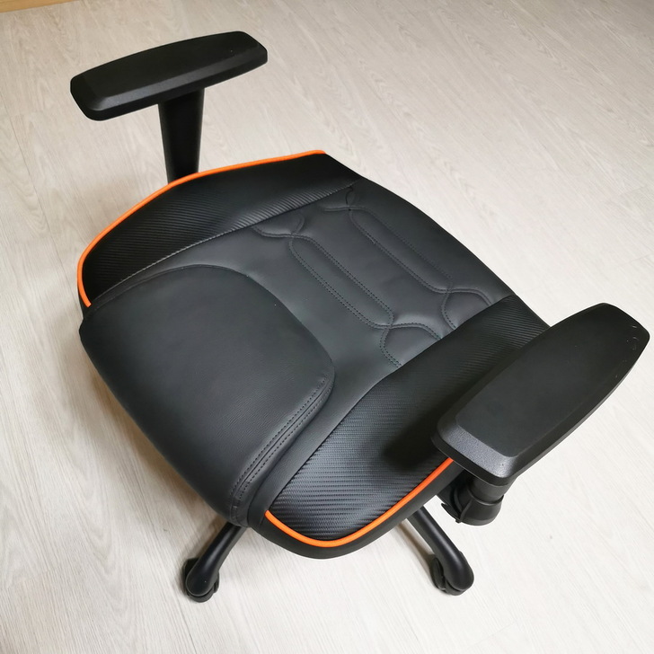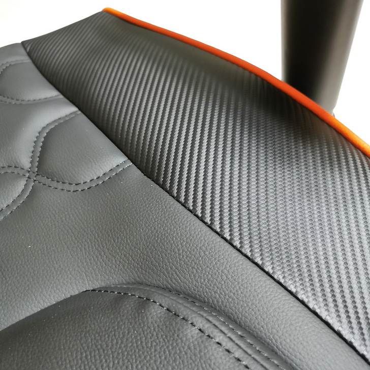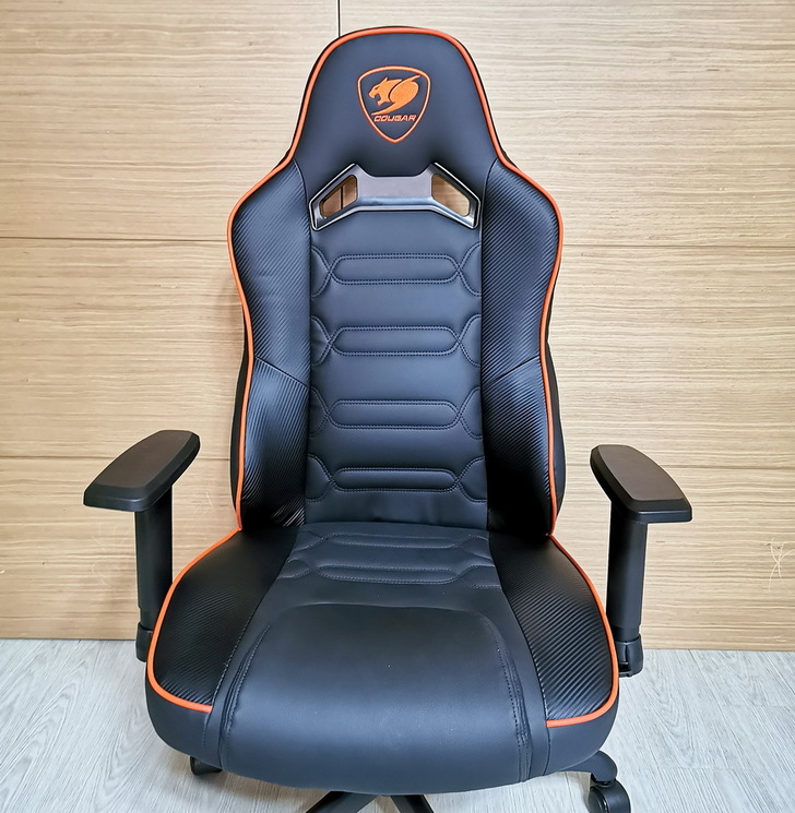 ▼ COUGAR FUSION S 組裝完成的正面,上方有電繡的 COUGAR標誌 搭上整體的黑橘配色 真的蠻好看的,PVC 人造皮革 也是閃閃亮亮。
