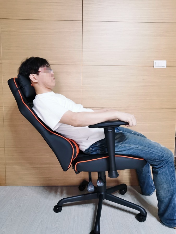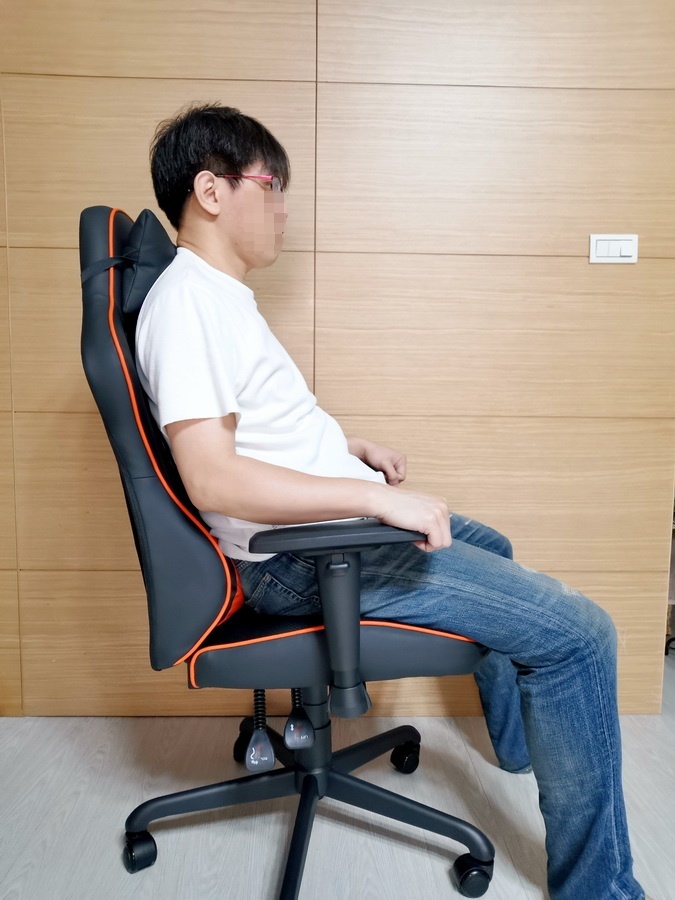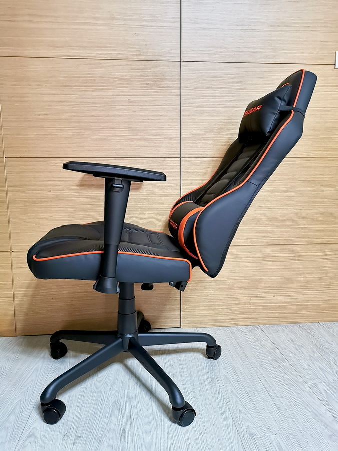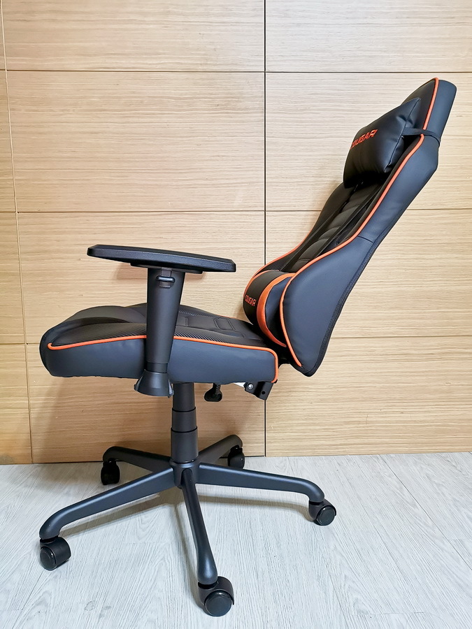 COUGAR FUSION S 電競椅 還有一個特色是 無段式調整椅背設計,輕輕向後靠就可以讓椅背傾斜,調整回來時也是小力的回彈,有別於使用過的其它電競椅,回彈時有種被撞擊的感覺。