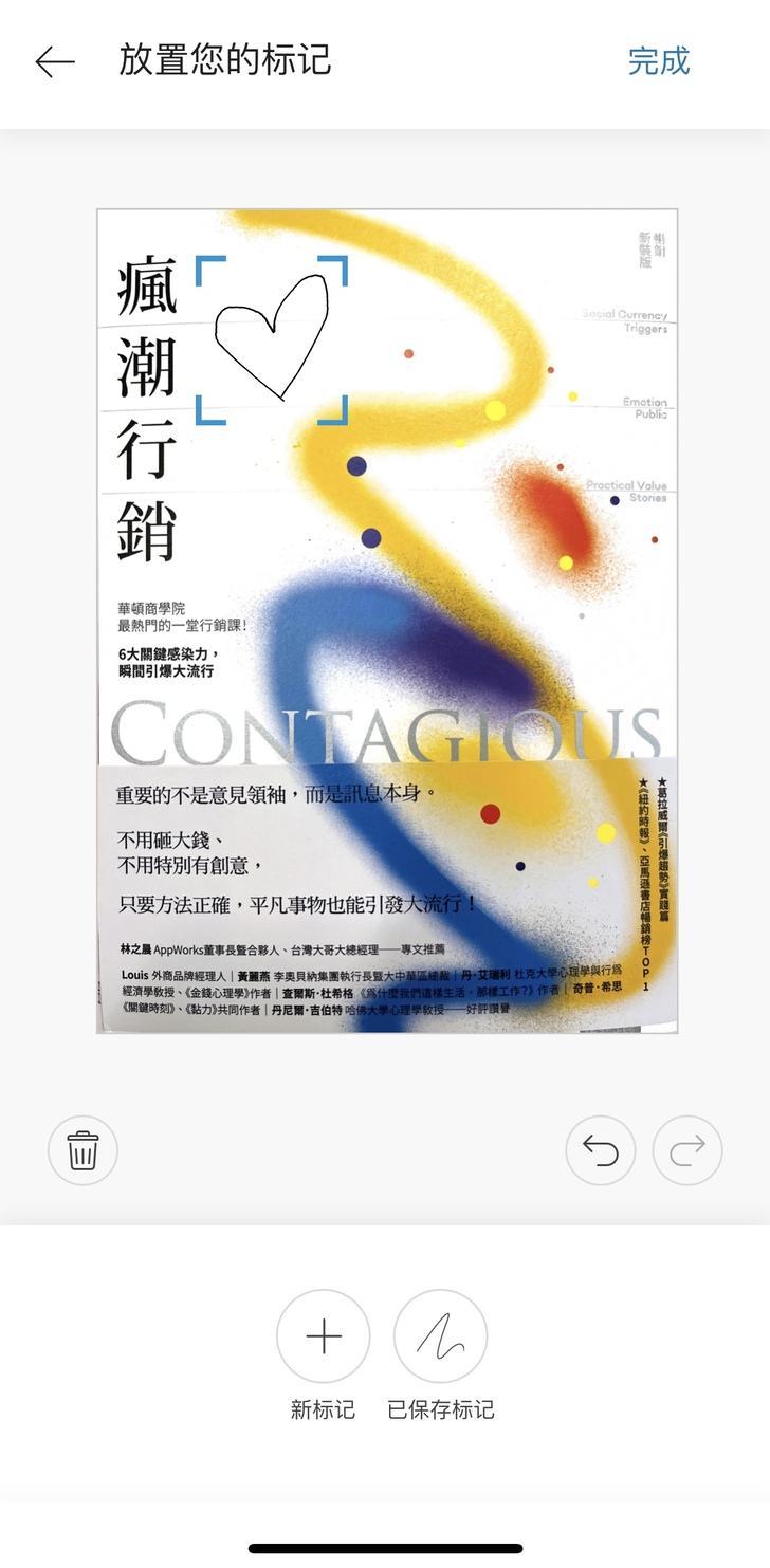 ▼ 我個人有一個滿喜歡的功能,就是有一個添加標記的功能,可以在你掃描的物件上增添個人化的標記或簽名。
