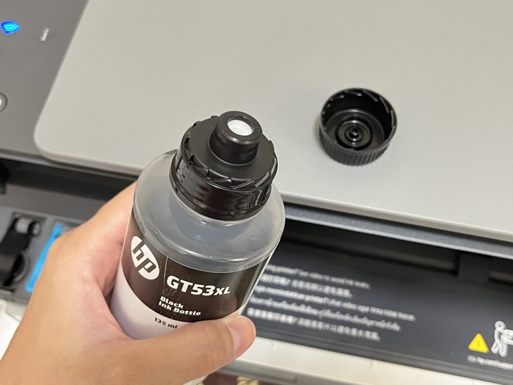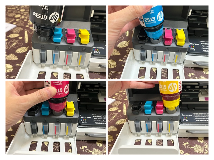 ▼ 接著要把墨水加入到墨水匣裡,加入墨水的方式很方便,只要把墨水瓶的開口接上墨水匣就好,不用害怕墨水噴灑溢出。