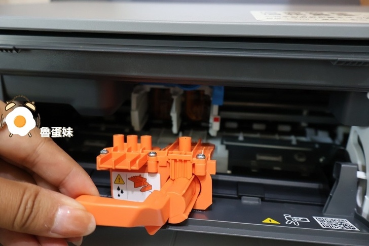 隨機提供黑色及彩色印表機噴頭,記得先將噴頭固定支架拿掉再安裝,本身有防呆機制不用擔心列印噴頭會裝錯。