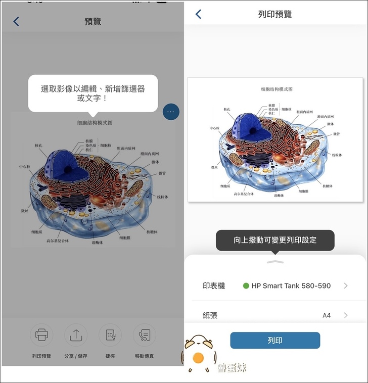 HP Smart Tank 580 連續供墨印表機算是一台智慧型印表機,只要手機下載HP Smart App應用程式並設定,以後就可以直接透過手機列印、掃描及分享檔案,這點我真的覺得非常方便,以往傳統印表機都還要下載驅動程式什麼的,這台不用~~只要初次設定完成以後就可以透過手機快速操作。